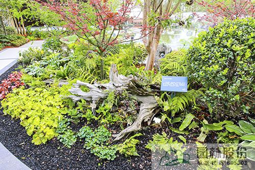 走過沉水橋廊,岸邊,是清靜淡雅的幽蘭花境,腐木橫臥、蕨類幽幽,枯枝為籬、幽蘭待放,木屑鋪地、玉簪竄出,陶淵明筆下的“幽蘭生前庭,含薰待清風(fēng)。清風(fēng)脫然至,見別蕭艾中”的幽靜生活躍然眼前。