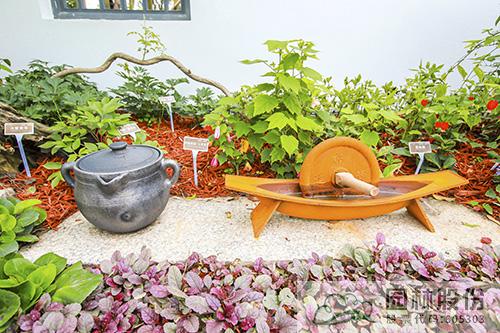 而花境中點(diǎn)綴的藥臼、藥碾、藥葫蘆、藥箋等中藥小品,不但營(yíng)造出濃濃的中藥氛圍,而且能夠吸引游客看一看、摸一摸,身臨其境感受中藥文化的博大精深。這樣的實(shí)景體驗(yàn),讓游客不再是“隔空看花”,而是與園林景觀實(shí)現(xiàn)了有趣的互動(dòng)。