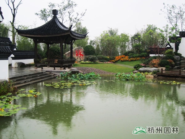 第二屆中國(guó)綠化博覽會(huì)之杭州園,又名“緣園”。以西湖美麗的傳說《白蛇傳》為設(shè)計(jì)脈絡(luò),將故事提煉成斷橋相逢、同心定緣、平湖秋月、雷峰夕照四個(gè)精華部分,融入到工程綠化作品中,運(yùn)用多桿叢生植物和木本花境為造景元素,平臺(tái)、小橋、埠頭、沙灘、景石,勾勒水鄉(xiāng)風(fēng)韻;粉墻、黛瓦、圓門、方亭、水榭,追憶江南情懷,由此達(dá)到了景中有情、情中有景,用園林綠化的丹青妙筆描繪出一幅情景交融的江南風(fēng)情畫卷。漫步緣園,仿佛回到千年前的西湖:風(fēng)景如畫、才子佳人、江南煙雨、風(fēng)光旖旎,斷橋之上,許仙與白娘子洋溢纏綿悱惻的浪漫愛情傳奇……