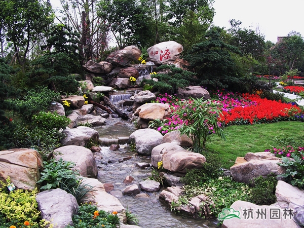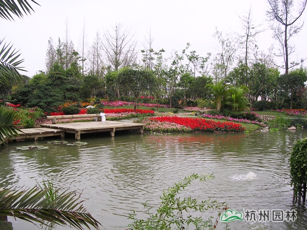 第六屆中國花博會之浙江園,又名花漫錢塘。占地面積1420平方米,呈自然式布局,全園以浙江山水為背景,以母親河錢塘江奔流入海為主線,一灣流水貫穿全園,“錢江源”、“晴空海蜃”兩大景觀交相輝映。園內綠樹盎然,花漫遍地,洋溢著浙江的朝氣與活力,體現了浙江自然山水、人文歷史、經濟社會的和諧。