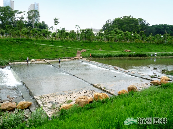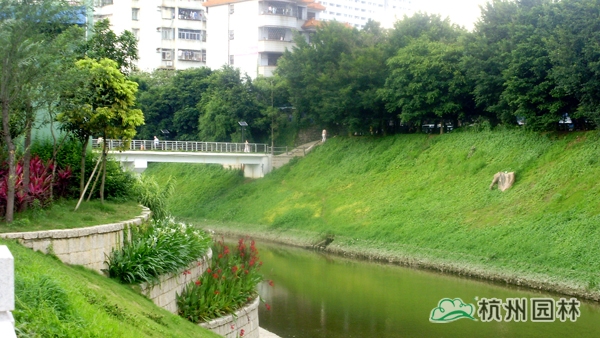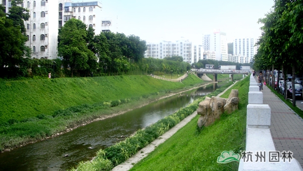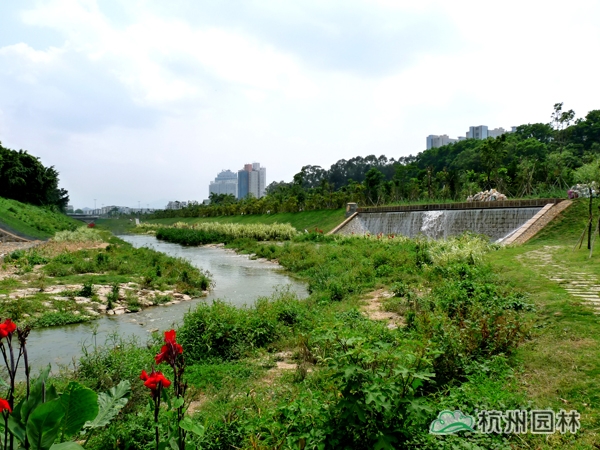 該工程位于深圳市羅湖區(qū)東部深圳水庫壩下,起點為東湖公園翻板閘消力池出口,終點為深圳河三汊河口,整治長度約2.5公里,施工內(nèi)容包括河岸護坡、景觀園建、綠化種植、給水和電氣、截污管及過河管道等。工程以“生態(tài)治理河流”為景觀設計主題,打造出一條生態(tài)修復與園林美景兼具的多彩濱河景觀長廊。