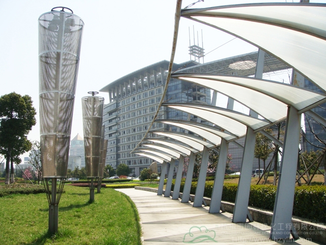 海寧市海洲廣場北區(qū)Ⅱ標段(綠化工程)位于海寧市行政中心內(nèi),區(qū)域范圍由海洲路、高家橋河、丁橋港一路兩河圍成,綠化用地123000平方米。該工程為綜合性園林工程,分為17個分部,包括園路、林蔭停車場、人文廣場、林蔭廣場、親水平臺、浮雕、噴泉、景觀亭、景觀廊、休息廊、網(wǎng)球場、小方塊道路、假山、園形花廊、鋪裝停車場、綠化工程、給排水工程及電氣安裝等。
