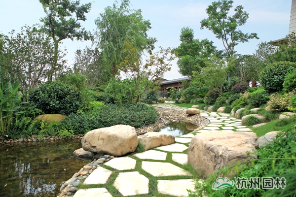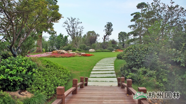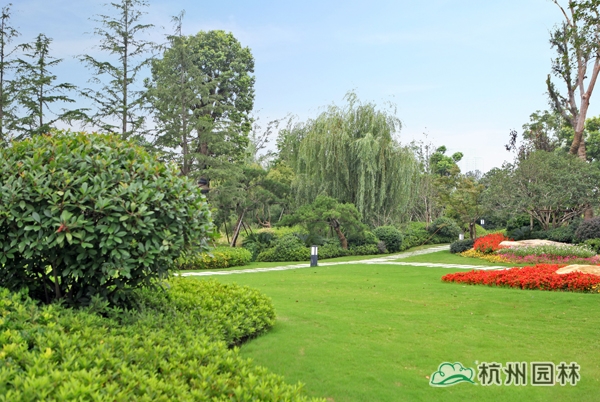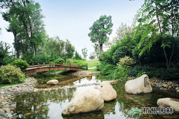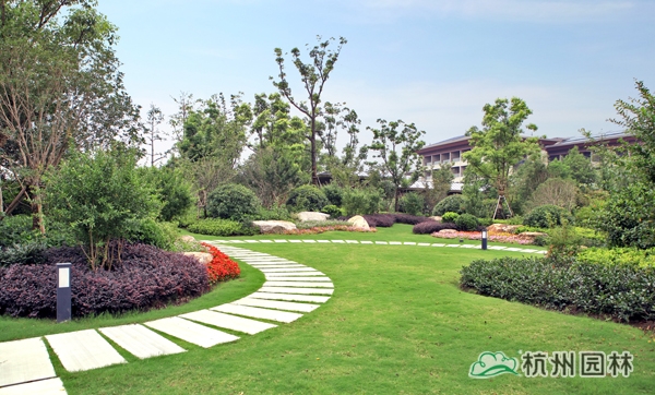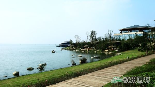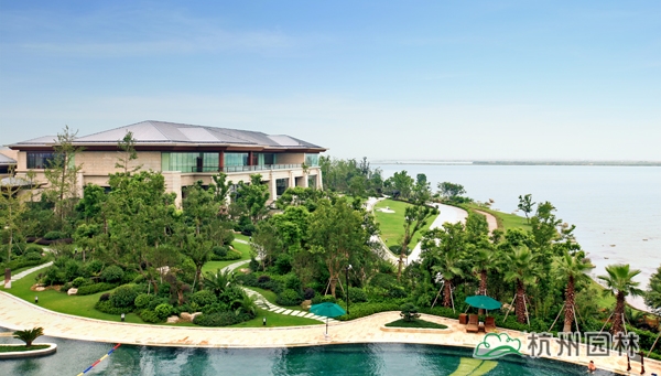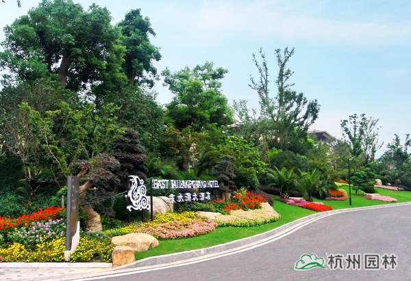 該工程位于江蘇吳江松陵鎮(zhèn)濱湖路三船河大橋附近,內(nèi)容包括綠化種植、硬質(zhì)鋪裝、園路施工、景觀小品工程、樁基工程、景觀照明系統(tǒng)等。在植物配置上,將中國園林的自然式手法與英國園林的自然式風(fēng)格相結(jié)合,營造出亦古亦今、中西混搭,整體恢宏大氣、局部婉約精致的高端酒店景觀。該工程榮獲“2014年度中國優(yōu)秀園林綠化工程大金獎”。