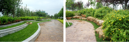 山東壽光市東環(huán)路東側(cè)綠化改造工程(圣城街-北環(huán)路)面積9萬平方米,施工范圍為機動車道與非機動車道之間2.5米的隔離綠化帶和30多米寬的路側(cè)綠化帶,施工內(nèi)容包括土方地形整理、綠化種植、園路鋪裝、景石擺放、景觀小品營建等。2009年9月開工,2010年7月竣工。經(jīng)過2年的精心養(yǎng)護,如今,這里樹木蔥郁,花草繁茂,一路走來,隨著多種風格的園路在腳下延伸,風景也在眼前不斷變化。近日,通過對項目負責人高仁良的采訪,我們對該工程有了更多了解。