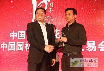 浙江省林業(yè)廳副廳長楊幼平為公司總經(jīng)理張炎良頒發(fā)“最佳合作伙伴獎”