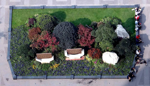 據(jù)李壽仁介紹,保留下來(lái)的大樹主要有兩種處理手法:像天竺桂、黃葛樹等幾十年的老樹,在周圍搭建木質(zhì)平臺(tái),既可以保護(hù)大樹,又可供游人休息;一些香樟、桂花、銀杏等,則用森林綠整石圍邊,搭配草皮、三色堇、球類、日本紅楓等植物,采用花境的布置手法,建成一個(gè)個(gè)面積大小不一的花壇,營(yíng)造出四時(shí)風(fēng)光各不同的江南園林意境。而平滑、細(xì)膩的森林綠整石,既是景觀的一部分,又是漂亮的坐凳,兼顧了景觀與實(shí)用的功能。