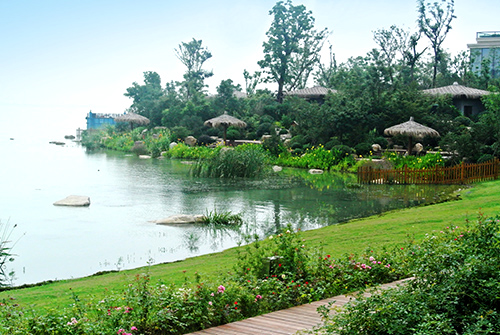 吳江東太湖溫泉度假酒店是一個(gè)旅游度假項(xiàng)目,位于江蘇省吳江市松陵鎮(zhèn),坐擁東太湖天然水景資源,視野開(kāi)闊,景觀宜人。該項(xiàng)目景觀工程施工總面積21.5萬(wàn)平方米,分兩個(gè)標(biāo)段進(jìn)行。一標(biāo)段施工面積13萬(wàn)平方米,總造價(jià)7800萬(wàn)元,由杭州市園林綠化股份有限公司承建;二標(biāo)段施工面積8.5萬(wàn)平方米,總造價(jià)2800萬(wàn)元,由杭州蕭山園林集團(tuán)有限公司承建。工程施工包括:綠化種植、土建施工、景觀小品、水景、景觀建筑、給排水系統(tǒng)及景觀照明系統(tǒng)等。該項(xiàng)目五大景觀亮點(diǎn)為工程添光加彩,獲得了2014年度“中國(guó)風(fēng)景園林學(xué)會(huì)優(yōu)秀園林工程大金獎(jiǎng)”。