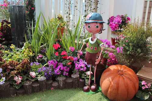 鵝卵石使溪水流淌更趨自然,美麗的鐵藝姑娘在花園中勞作。仔細(xì)看,旁邊還有青蛙王子樂隊(duì)的婉轉(zhuǎn)音樂。這些小細(xì)節(jié),增加了花境的趣味性。