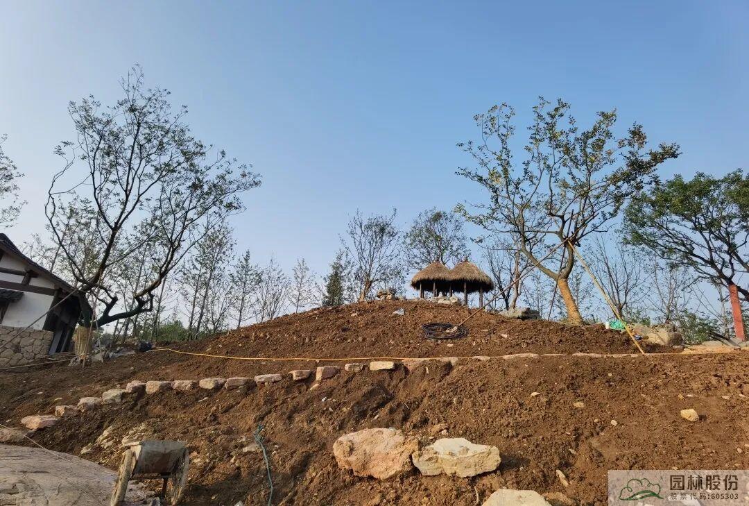 截止目前,杭州園已完成隱秀、湖畔精舍兩棟建筑背景喬木,茶園區(qū)域骨架樹和登山道銀杏林、背景喬木種植,接下來將進行灌木以及湖岸邊喬木種植。