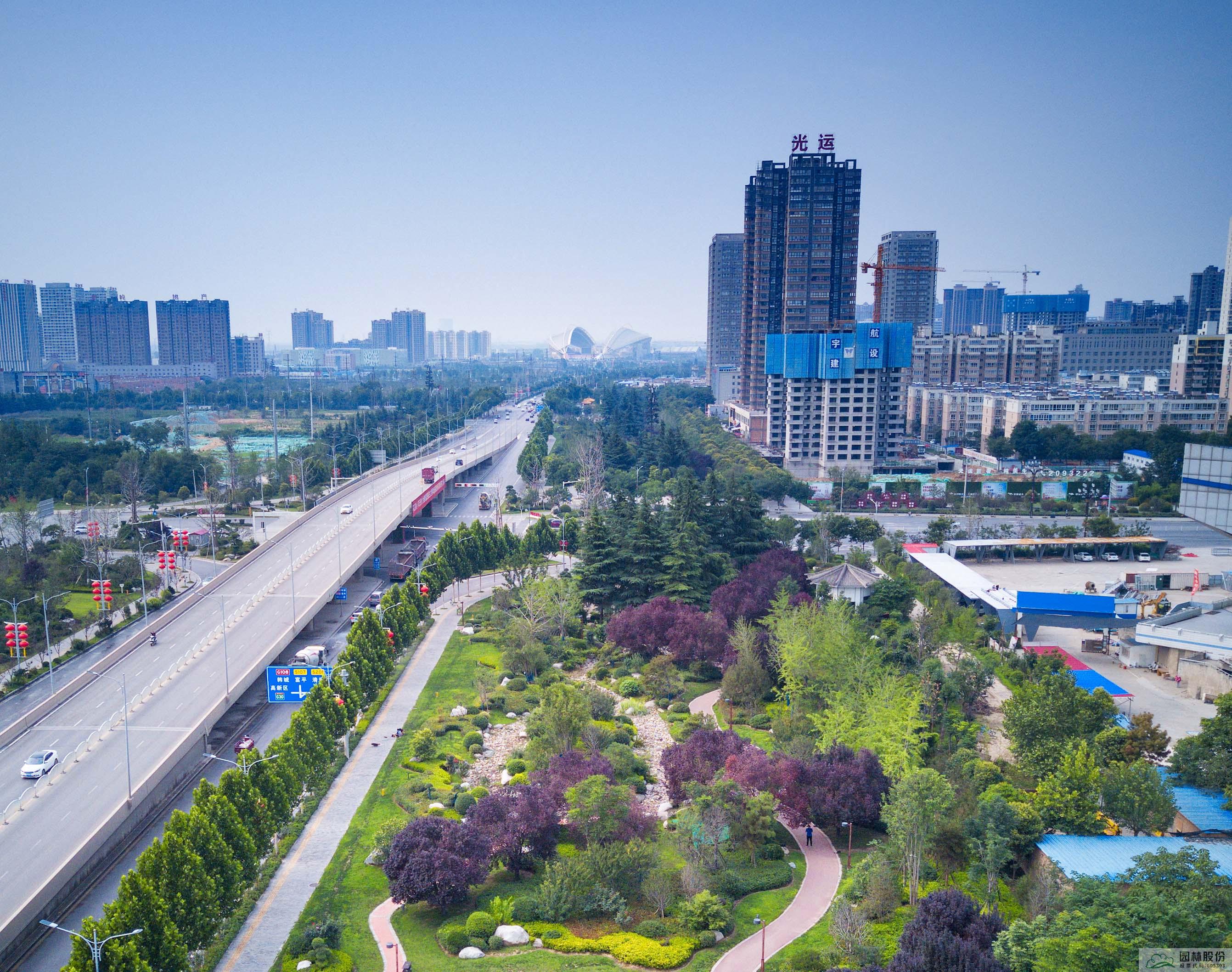 立體園林,師法自然。在另一個城市園林項目——渭南市中心城市道路綠化提升改造項目,南北向沿倉程路和渭清路的兩條城市綠廊成為打造重點,公司打破原有西北城市綠化景觀一成不變的陣列布局,在高鐵站對面的倉程路端頭,設(shè)計以造型油松為主的迎賓景觀,豐富植物組團(tuán)層次,引進(jìn)耐旱耐寒的常綠品種,滿足渭南市人民對城市景觀從園林變園藝的期待,打造煥然一新的城市風(fēng)貌。