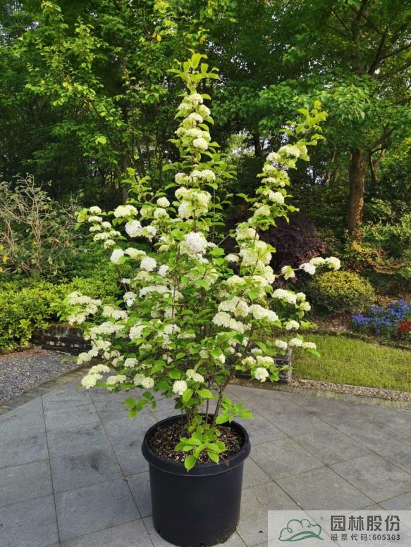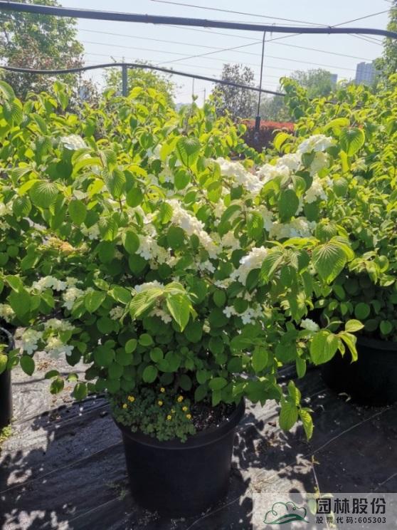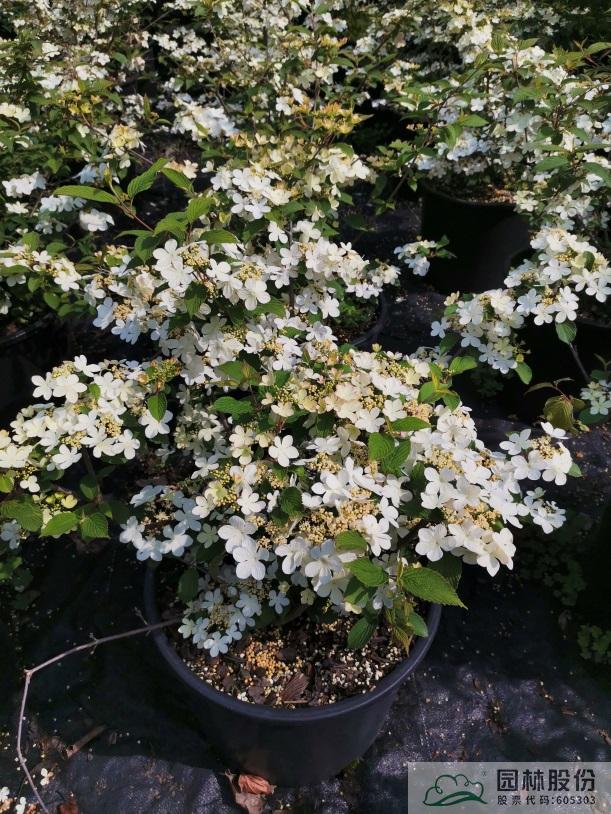 忍冬科莢蒾屬,落葉灌木,樹(shù)姿舒展。花序半球形,全為不孕花,開(kāi)花時(shí)滿樹(shù)白花猶如積雪壓枝,高潔素雅,花謝后則綠葉如碧,無(wú)論花葉均具有較好的景觀效果。生長(zhǎng)強(qiáng)健,喜歡散射光環(huán)境,適合工程應(yīng)用或庭院觀賞。