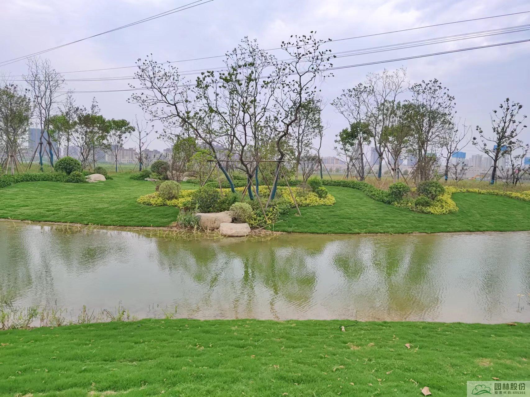 道路西側(cè)帶狀公園內(nèi)水系駁岸景觀