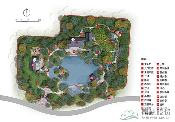 借助場(chǎng)地高差順勢(shì)而為,掇山理水,合理布局,形成了獨(dú)特的“一山、一溪、一湖、一島”的自然山水骨架和“二亭、二橋、二樓(民居)、三門”的建筑格局,通過(guò)景序布置、空間轉(zhuǎn)換劃分出五大展區(qū),既符自然之理,又富美感之趣。民居農(nóng)田、茶園竹林、鄉(xiāng)風(fēng)民情在這里融為一體,通過(guò)藏、透、回、借、寓等造園手法,從有限到無(wú)限,共同組成了天人合一的錢塘人家。