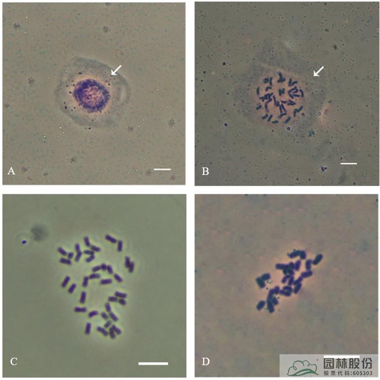 繡球聯(lián)盟理事長單位杭州市園林綠化股份有限公司(浙江園林資源與環(huán)境技術(shù)研究院)與南京林業(yè)大學(xué)(林木遺傳與生物技術(shù)教育部重點實驗室),聯(lián)合開展繡球染色體制作和定位研究,并成功建立繡球‘無盡夏’根尖高質(zhì)量中期染色體制備及rDNA物理定位技術(shù)體系,這一體系可高效確定繡球?qū)僦参锏娜旧w數(shù)目及rDNA的分布,可為繡球?qū)儋Y源鑒定、雜交育種的親本選配提供參考,從而指導(dǎo)繡球?qū)僦参锏碾s交育種實踐。本研究在國家自然科學(xué)基金項目( 31670603)、上海市綠化和市容管理局科研項目( G212410)、上海市科學(xué)技術(shù)委員會科研項目 (19DZ1203503)等項目的資助下完成。研究成果論文已在《林業(yè)科學(xué)》2021年第57卷11期雜志發(fā)表。