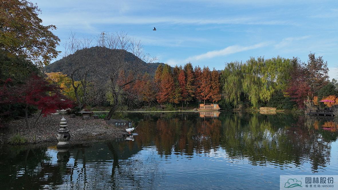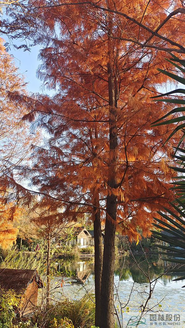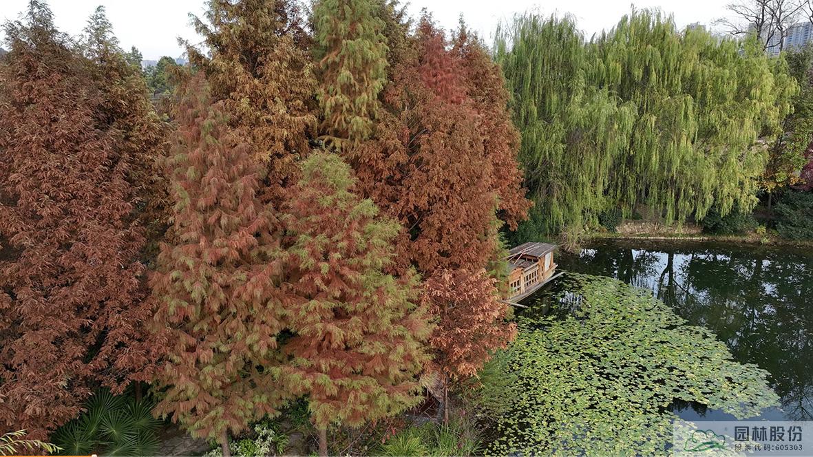 金黃的無(wú)患子、絢麗的紅楓、黃紅變換的楓香構(gòu)成了畫(huà)境園初冬繽紛世界的三部曲。半島的烏桕、池塘對(duì)岸的水杉水松池杉混交林,則如跳動(dòng)的音符,共同譜寫(xiě)著初冬的樂(lè)章。