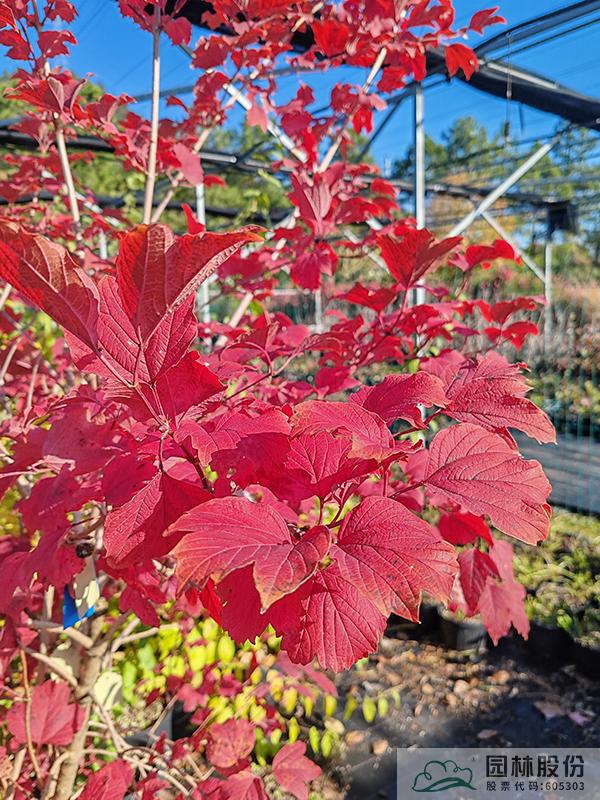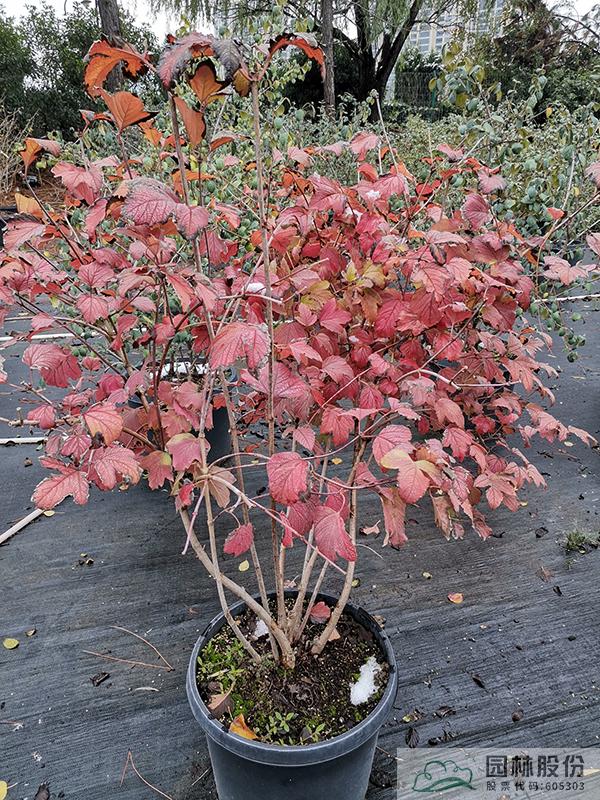 忍冬科莢蒾屬,叢生性落葉灌木,高可達(dá)4米?;ò咨?,花期4-5月,果大而紅,觀果期長,可從7月持續(xù)到10月。葉掌狀,通常三裂,秋季一般9-10月葉色開始轉(zhuǎn)紅,11月達(dá)到最佳效果。歐洲莢蒾是莢蒾屬中秋色葉效果較好的一個種類,紅葉期來得比較早,且葉色最為鮮艷。該種病蟲害少,適應(yīng)性強,耐寒,北方室外能正常生長。生長速度快,適合工程應(yīng)用或庭院觀賞。