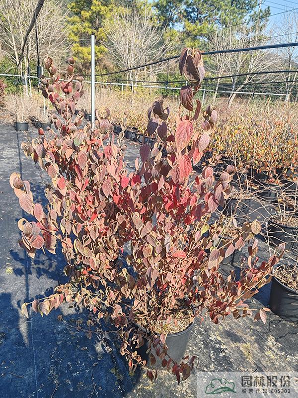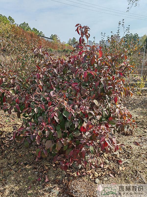 忍冬科莢蒾屬,落葉灌木,全株被毛?;ò咨?,量大,花期4月。果紅色,量通常較小,果期10-12月。秋季葉色變暗紅,通常11月開始變色,12月至次年2月達(dá)到最佳觀賞效果。病蟲害較少,生長速度快,且耐寒,通常雪期還未落葉。植株極耐修剪,適合工程應(yīng)用或庭院觀賞。