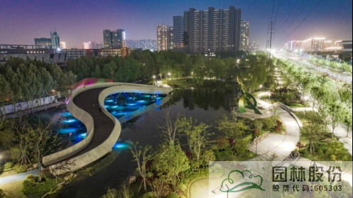 對現(xiàn)狀密林進(jìn)行梳理,水岸兩側(cè)栽植了烏桕、紅楓、水杉等色葉樹種,豐富了天際線和林冠線,岸邊還栽植了碧桃、櫻花、水生美人蕉、矮蒲葦、德國鳶尾、旱傘草、紫嬌花等植物,打造出疏密有致、色彩多樣的水岸景觀。