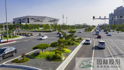打破原有道路植物種植形式單一,品種較少,冬季落葉草本花卉較多,與道路西側(cè)景觀難以呼應(yīng)的不足,改造后的中央隔離帶,在道路兩端島頭位置,用國產(chǎn)造型黑松替代性價比不高的日本造型黑松,以造型黑松樁點綴,中間段則采用常綠植物和自然式花境,以大小組團(tuán)形式進(jìn)行植物造景,在豐富植物品種和種植手法的同時,滿足了冬季景觀效果,并能與道路西側(cè)景觀有機(jī)融合。