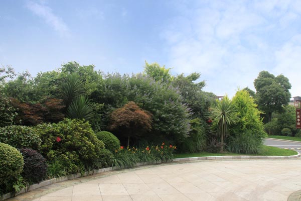 別墅小區(qū)公共景觀的植物配置不但要與建筑、環(huán)境相協(xié)調(diào),還要做到多層次、多樣化、多季相,并創(chuàng)造出植被生態(tài)景觀及其圍合空間的豐富多彩,達(dá)到人與環(huán)境的和諧統(tǒng)一,因此,植物的選擇與配置顯得尤為重要。據(jù)徐建良介紹,工程中的植物選擇與配置遵循三個(gè)原則:第一,根據(jù)地域特征,考慮季相變化;第二,根據(jù)建筑空間的大小、遠(yuǎn)近,近景或端景配置觀賞性強(qiáng)的品種,遠(yuǎn)景的植物配置則充分考慮空間天際線及建筑物之間的關(guān)系;第三,充分考慮林下植物和孤賞植物布置的各個(gè)方面,突出自然生長特征和人工修整造型植物之間的反差對(duì)比。以此為指導(dǎo),上層空間選擇了香樟、合歡、玉蘭、樸樹、銀杏等大規(guī)格喬木,中下層空間種植紅葉石楠、枸骨、杜鵑、鋪地柏、火棘等花灌木和地被,再配以微地形的處理,整個(gè)植物造景的林冠線、林緣線及空間層次別具特色,從而使得別墅區(qū)的整體景觀層次分明、色彩豐富,既在統(tǒng)一中富于變化,每個(gè)區(qū)域又自成風(fēng)格。特別是每個(gè)路口的花境營造,更為小區(qū)增添一抹亮色。