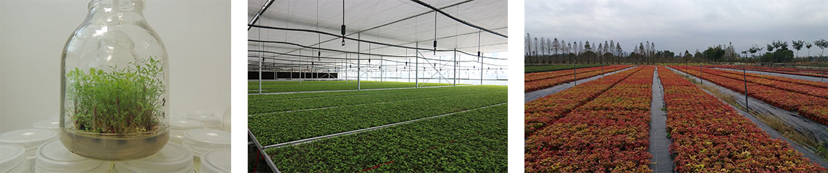 研發(fā)中心擁有1200㎡組培研發(fā)及生產(chǎn)車間,年產(chǎn)組培種苗500萬(wàn)株。經(jīng)過(guò)多年的研發(fā),建立了南天竹屬、冬青屬、礬根屬、紫金牛屬、繡球?qū)佟褜俚榷喾N植物組培快繁技術(shù)體系,在木本植物組培快繁技術(shù)方面處于國(guó)內(nèi)領(lǐng)先水平。